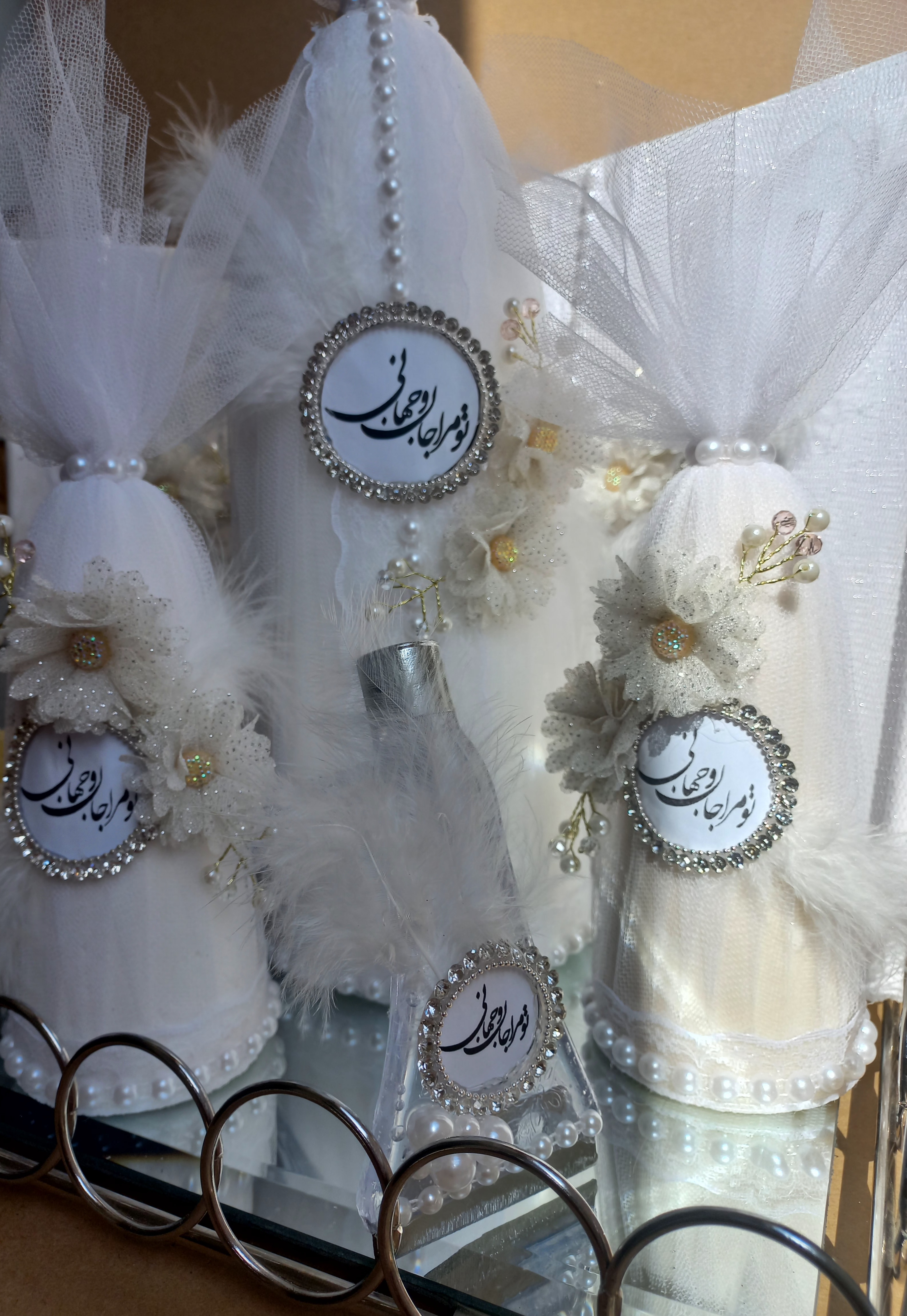 قرآن - دو قند ساب - کله قند بزرگ - قند شکن - دفتر بله برون -جای حلقه - خودکار-نبات   و تزئین آیتم ها